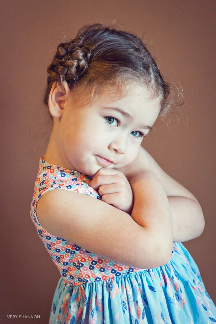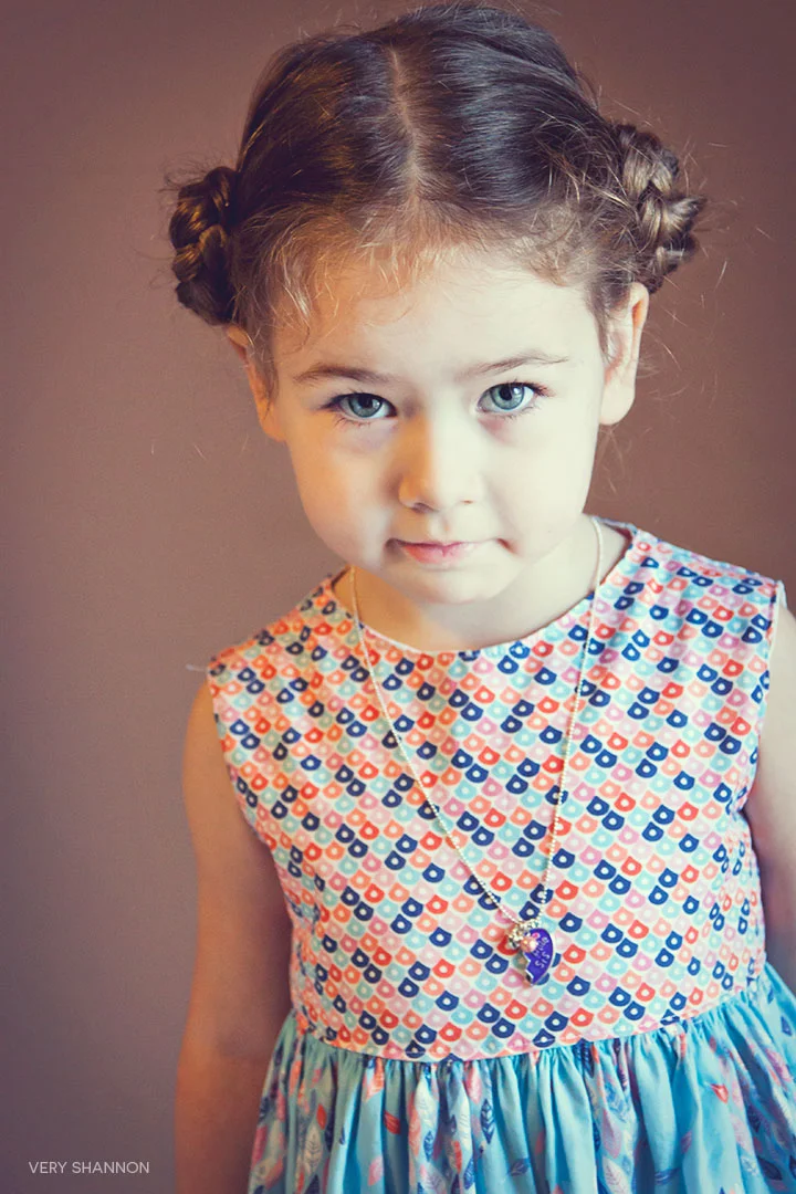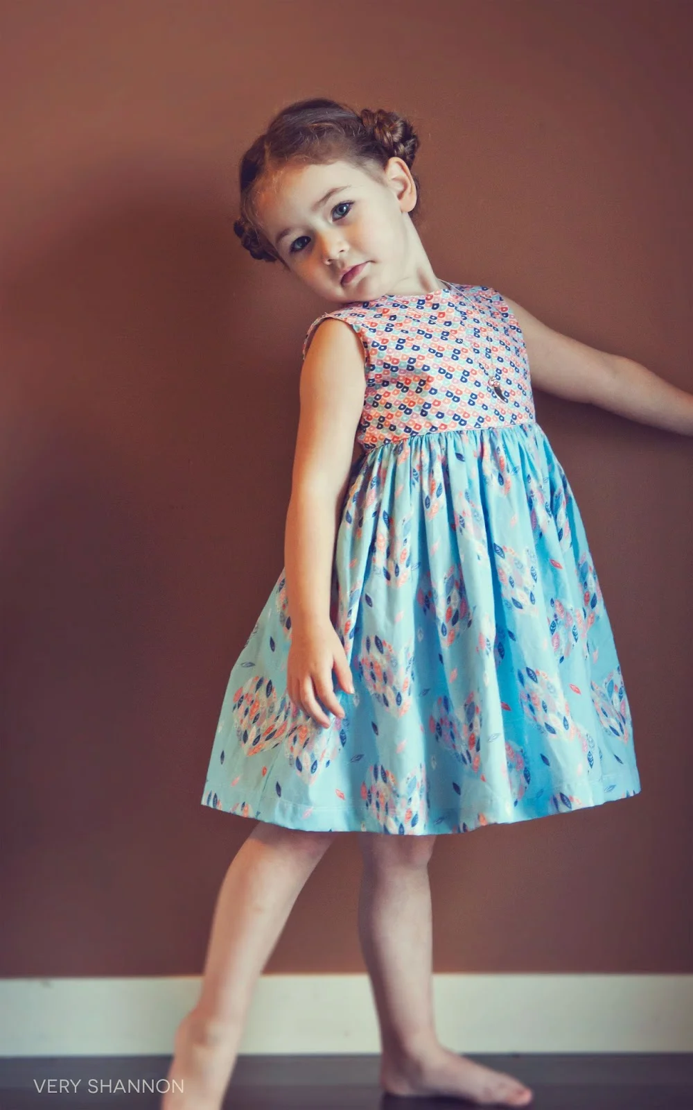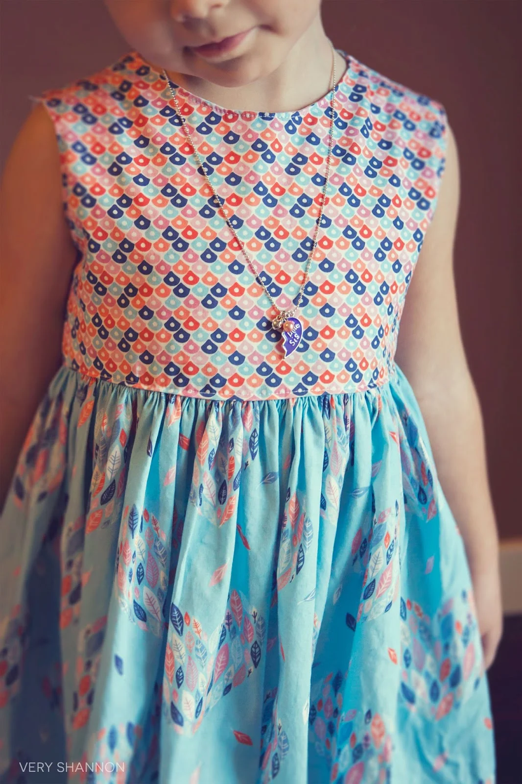 My little girl is wearing a size 3T bodice with a size 4 skirt. Only modification I made to our Sweetheart Dress Pattern was to use the full width of the yardage for the skirt for extra twirl factor! She loooooves that! She's really into ballet and dance and I think this is her favorite dress we've made her yet! She wouldn't take it off. You can read more about the Sweetheart Dress Pattern and purchase it from our shop HERE.