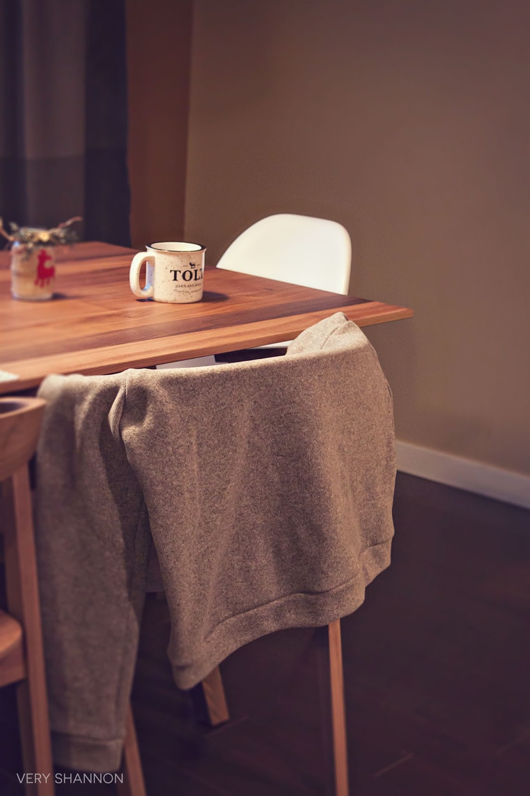 My Linden Sweatshirt has come in so handy lately what with snow and tons of rain around here. Due to the horrid weather we've been having lately you get my tree lit photographs. That's what happens when you have absolutely no natural light and you gotta work with what you got :) I really wanted to blog about this sweater so you get another photoshoot of me in my "real life" element. My fave leggings, wooly socks, my go to mug & basket (from Tolt Yarn & Wool of course). I like to keep it real around here every so often. Bloggers are real people and sometimes, life just doesn't go along with our lighting and photography demands. So you work with what ya got.