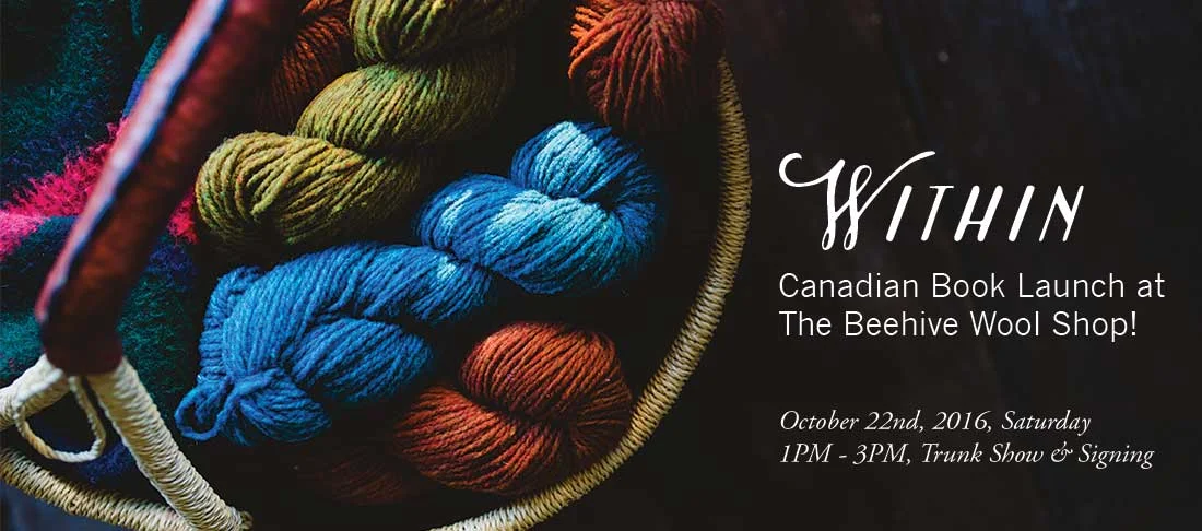 We're so excited to be kicking off the Canadian launch of our newest book Within: Knitting Patterns to Warm the Soul at our local yarn shop - The Beehive Wool Shop in Victoria, BC, Canada. Join us on October 22nd, from 1-3pm to try on samples from the book, meet myself and Jane, get your books signed, shop & more!