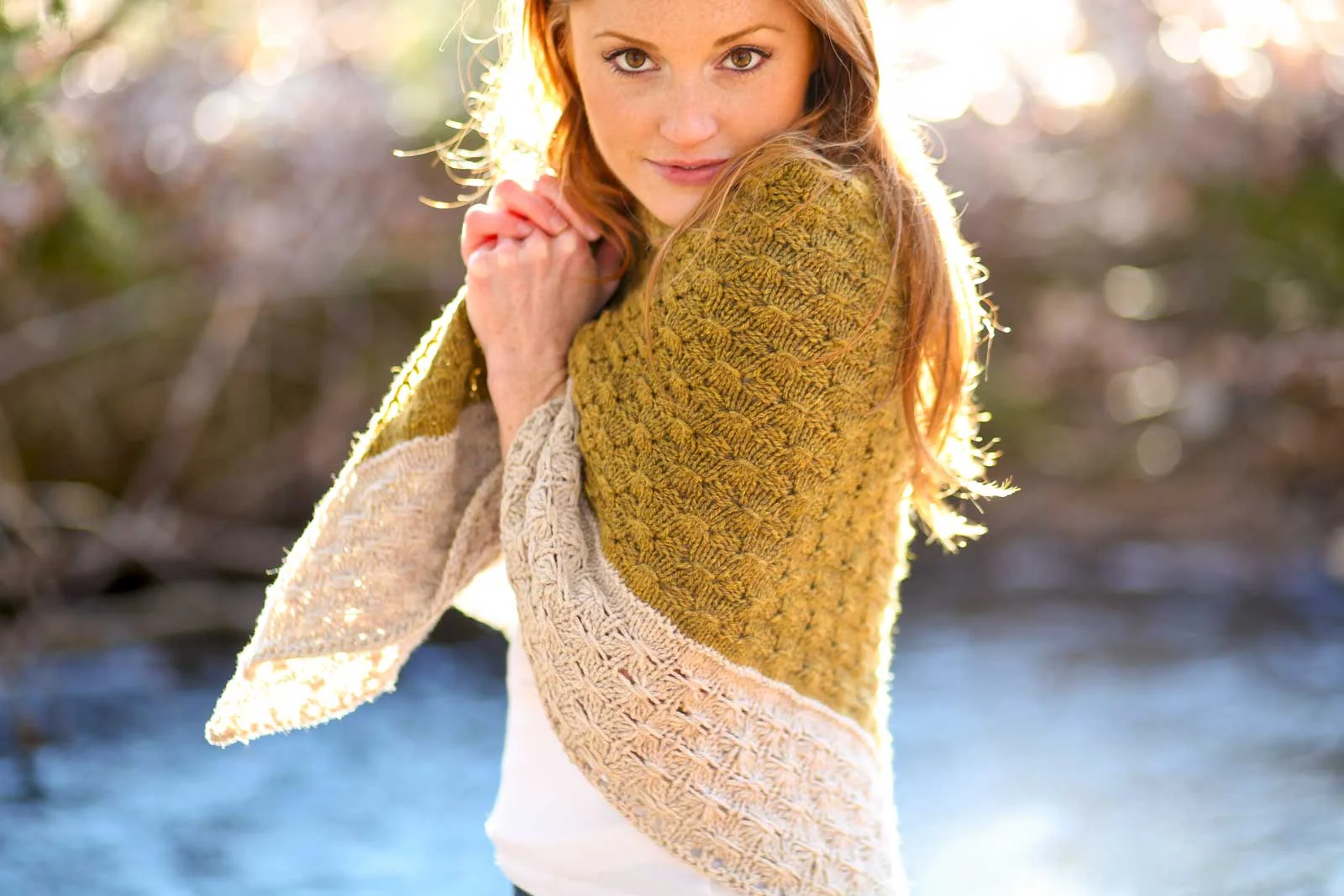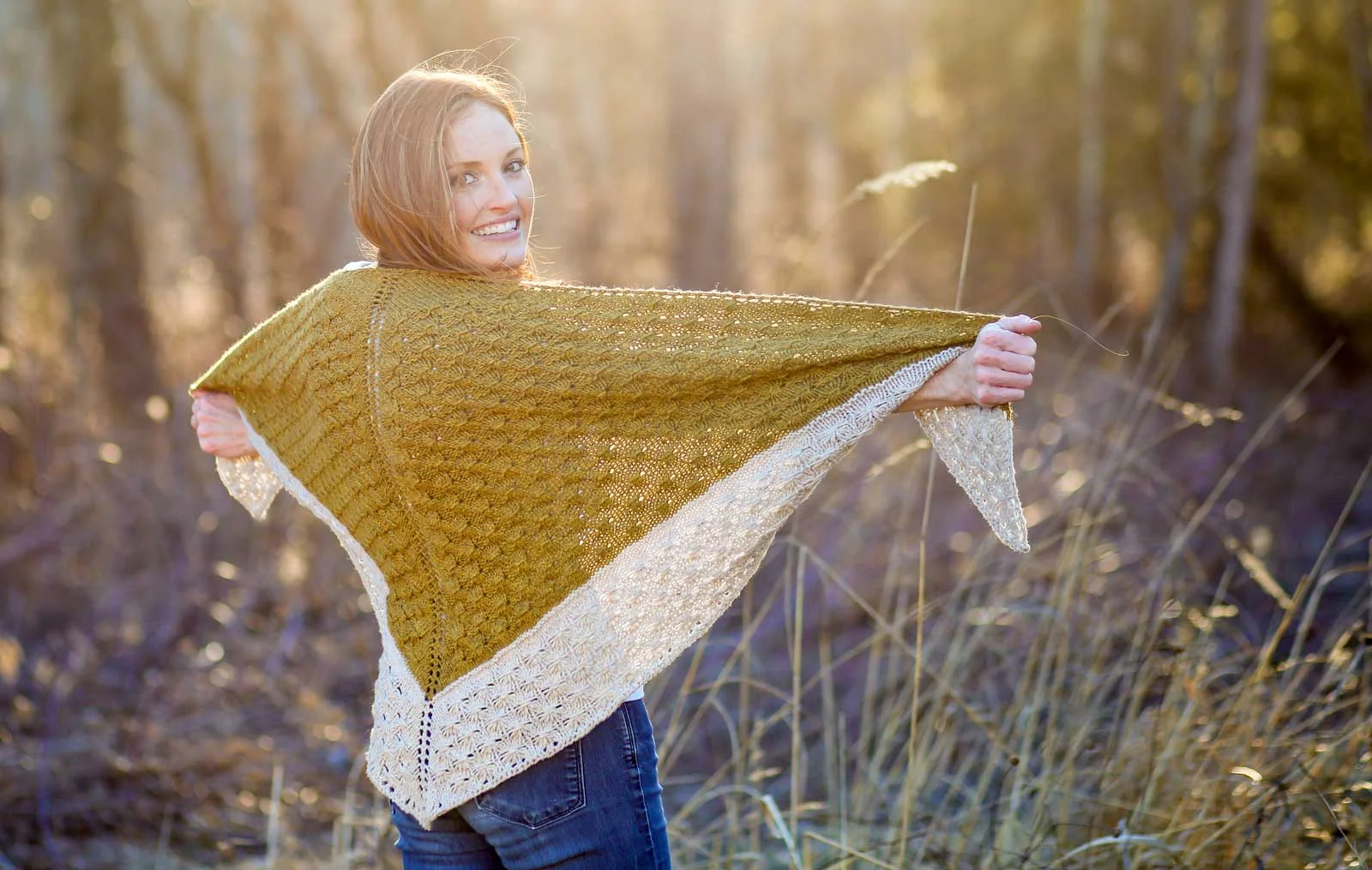Meet a triangular shawl that’s as addictive to knit as it is snuggly to wear. Amberle’s squishy textural stitches bring worsted yarns to life and the repetitive pattern is easily memorized—making it much less complicated than it looks. The wide border creates a gorgeous way to showcase contrasting colors. And did I mention the texture - swoon!