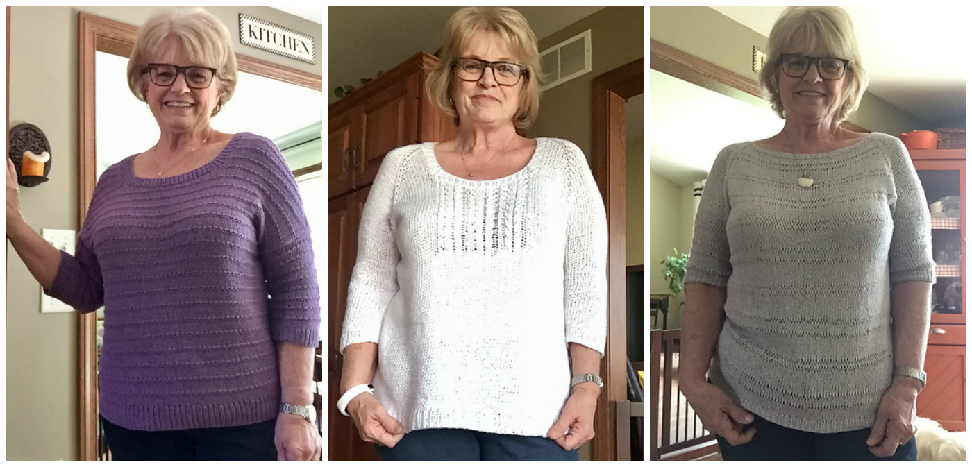 Donner, Merrifield and Perkins Cove all knit by Cinciknitti